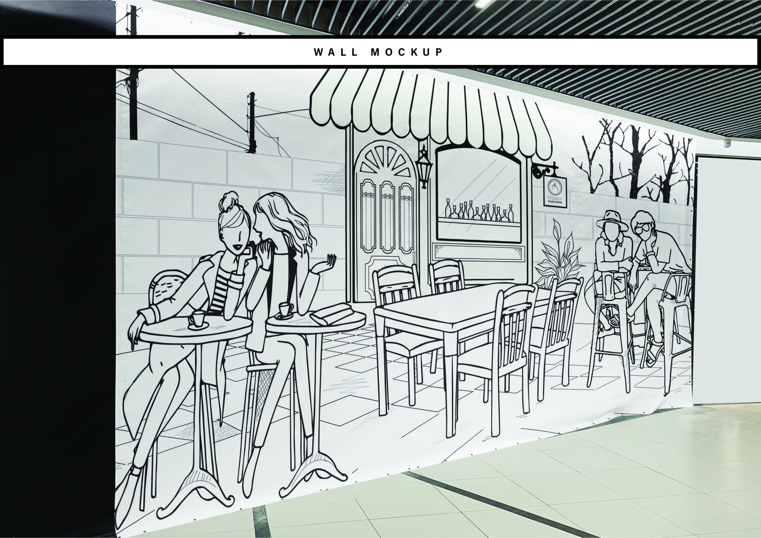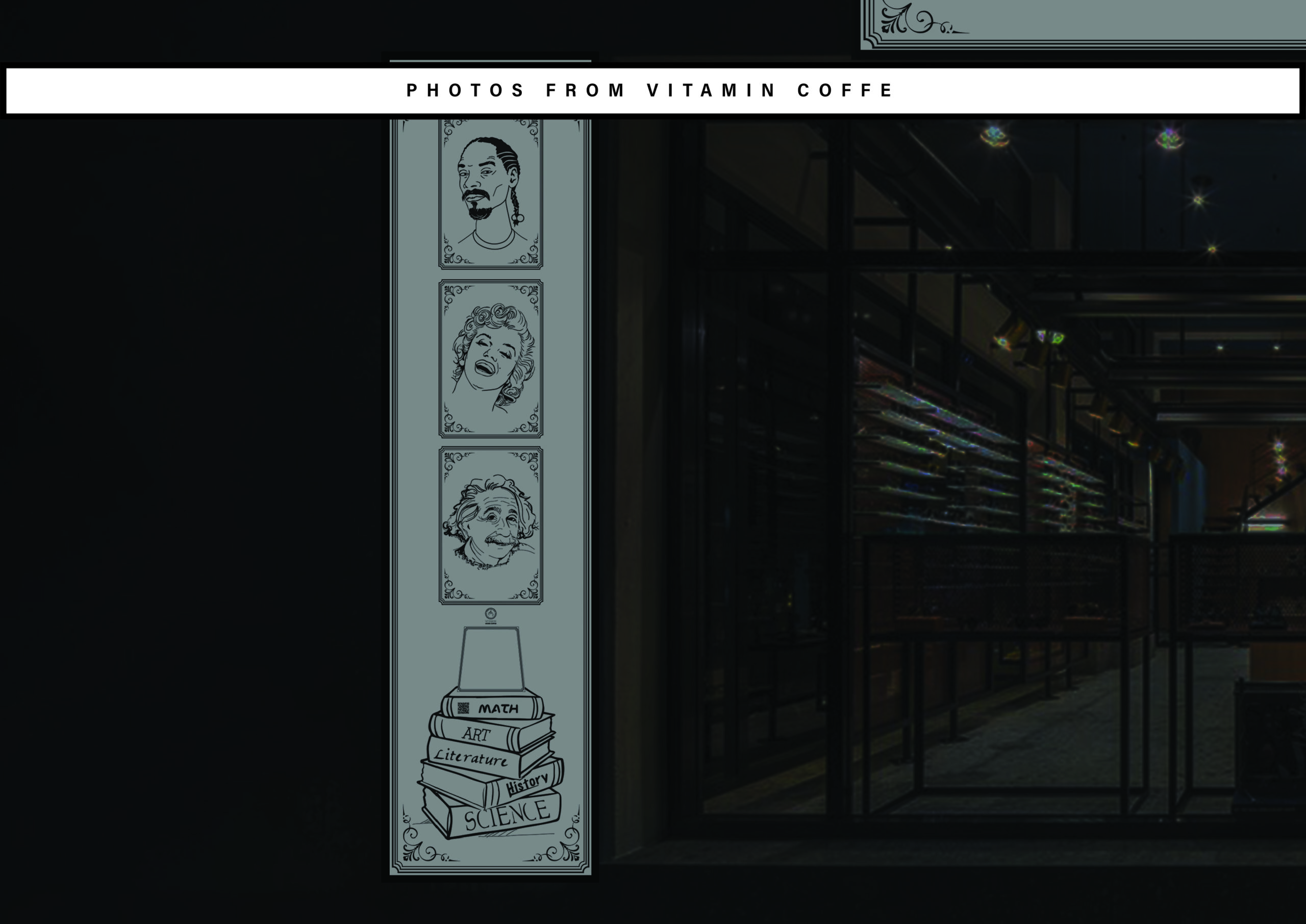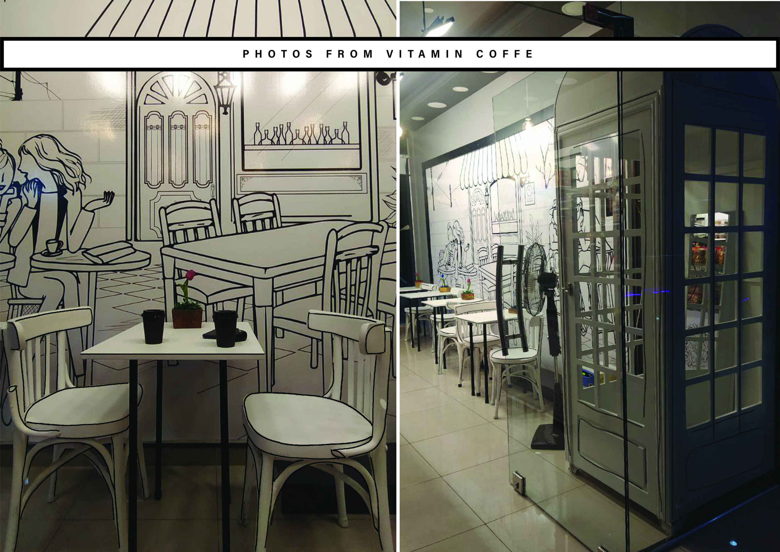 Brand Direction & Spatial Identity Vitamin House Coffee was conceived as more than a café, it was positioned as a mood-driven space centered around the ritual of coffee and everyday comfort. As a Creative Designer, my role extended beyond logo development into shaping a cohesive brand presence that translated seamlessly into the physical environment. The core visual direction was built around a refined 2D language defined by strong black line work and controlled minimalism. The intention was to create clarity, contrast, and memorability, allowing the brand to feel structured yet warm. Rather than limiting the identity to printed materials, the concept was expanded spatially. Graphic elements were integrated directly into the café’s interior, transforming walls, glass surfaces, and decorative details into extensions of the brand system. Vitamin House Coffee demonstrates how identity direction can move beyond surface-level design into experiential branding.